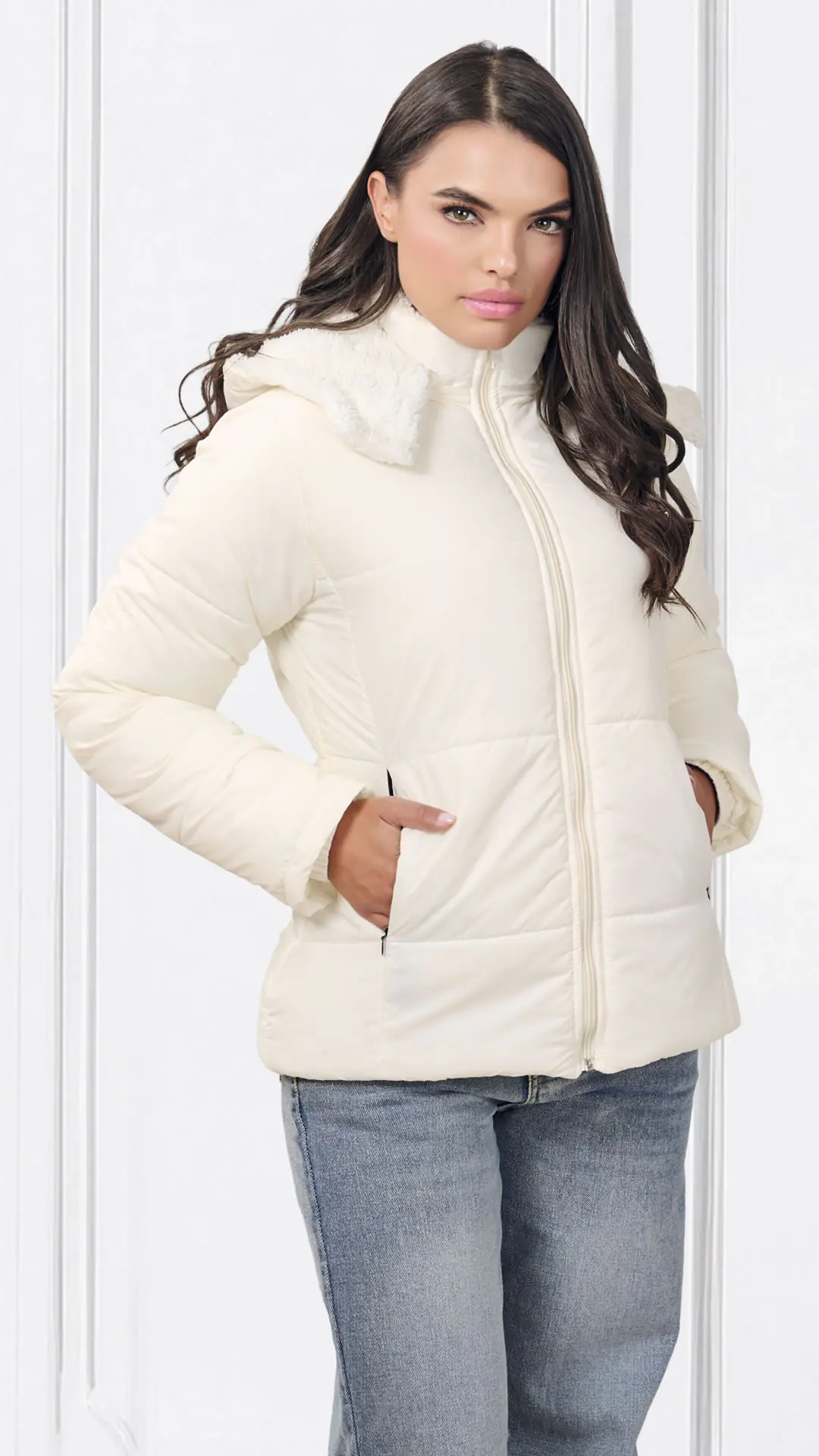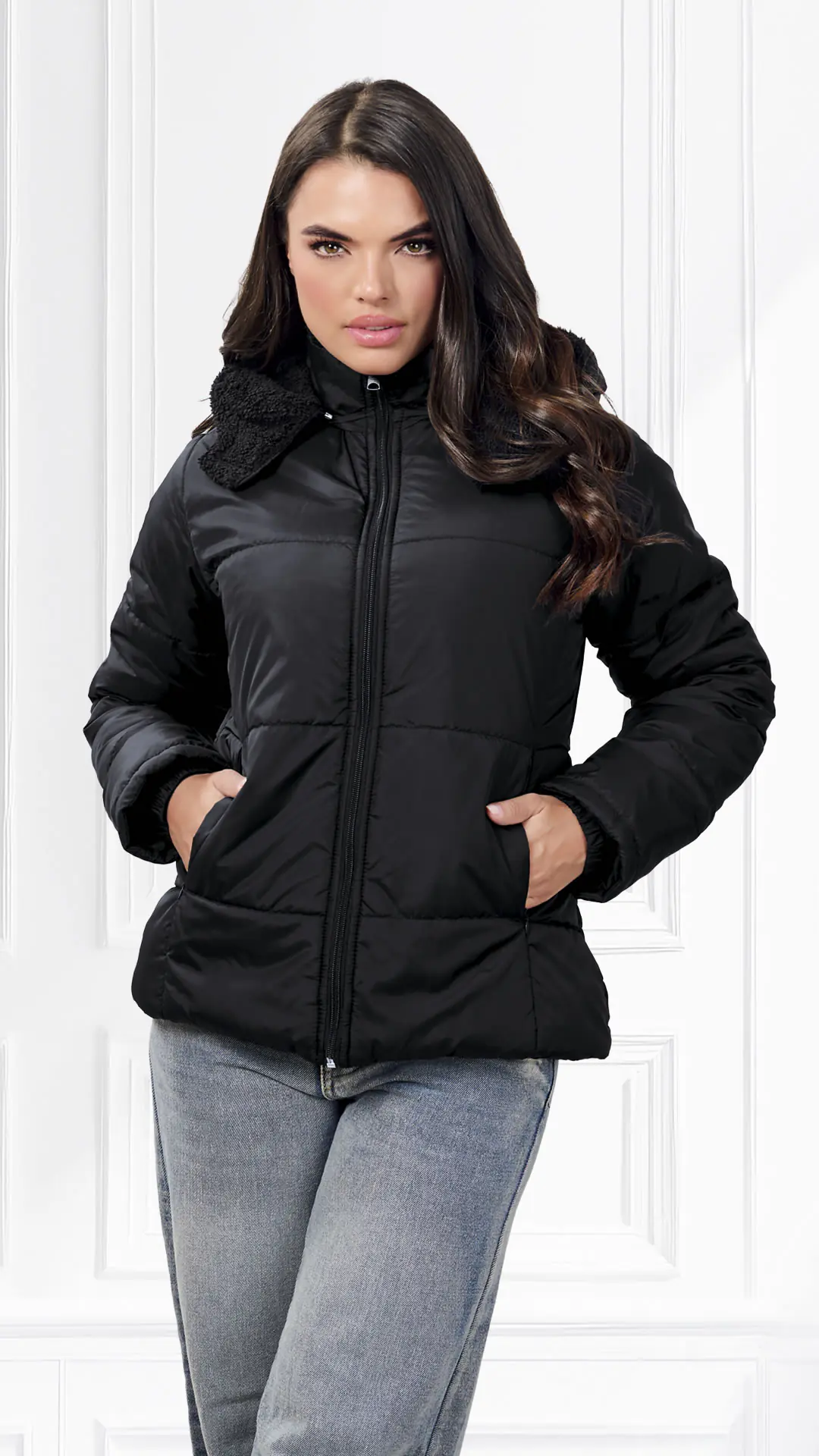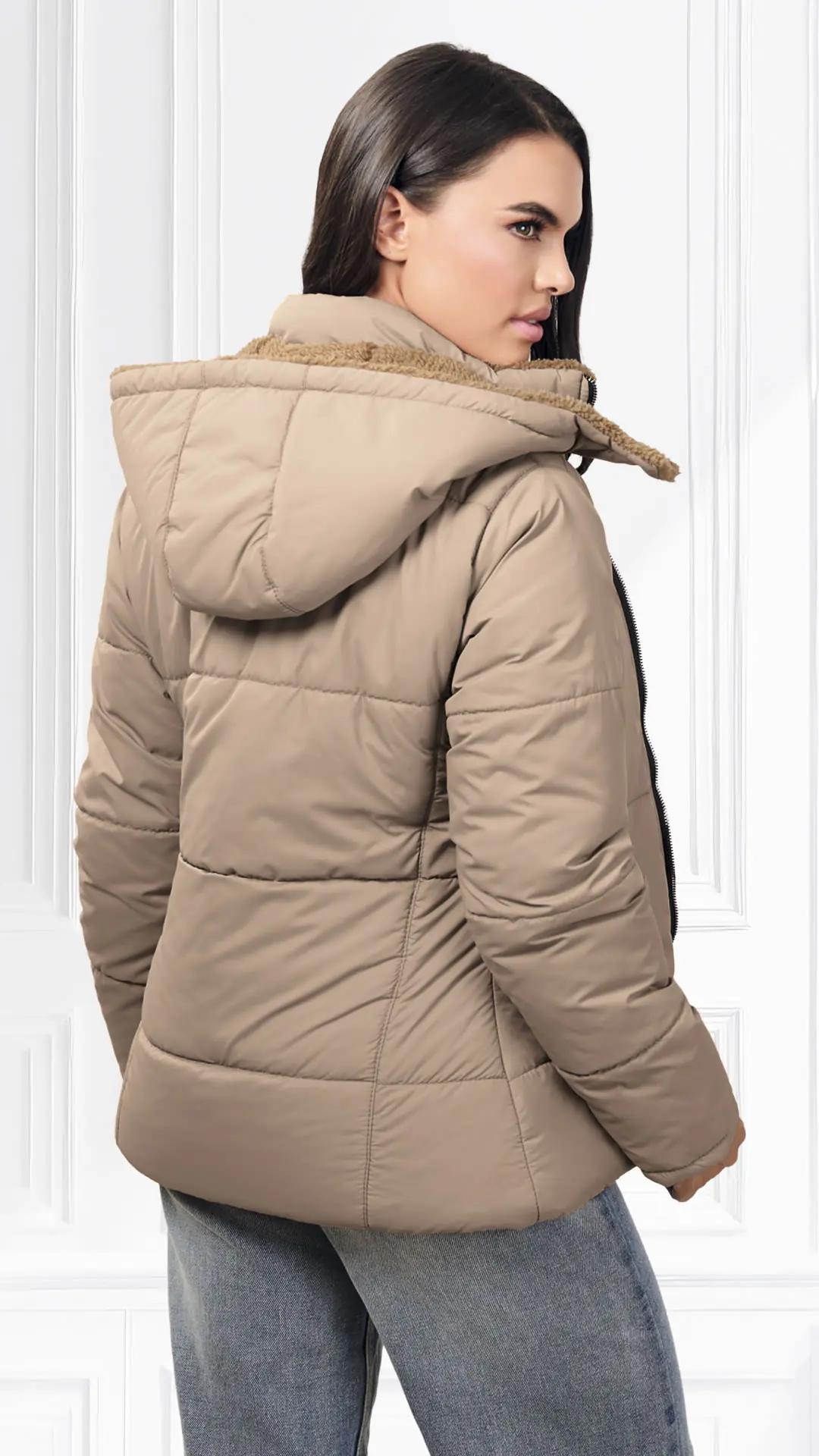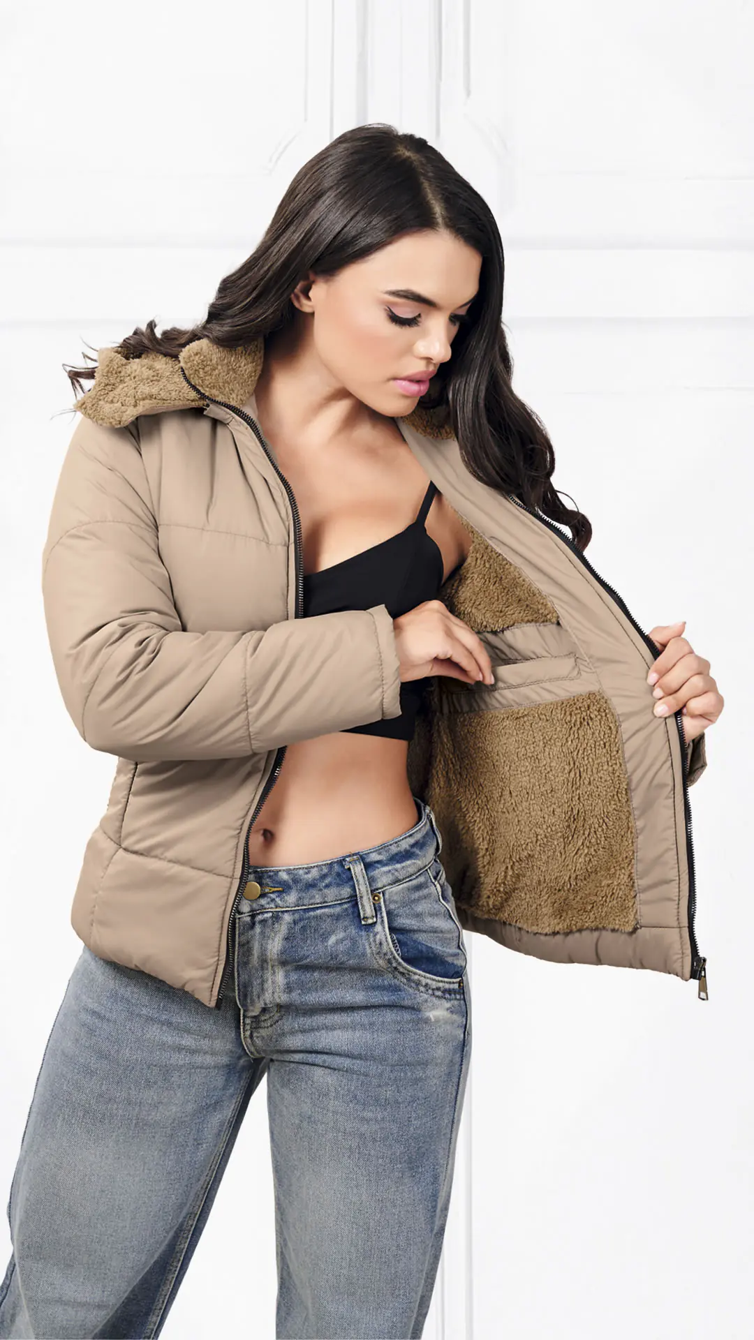 Chaqueta Nylon, forro interno en ovejero, capota de quitar